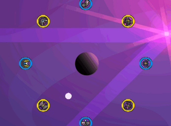Blackhole it a top down shooter for up to 8 players on Atari Jaguar (using 2 team taps) with a twist: there is a black hole in the center of the arena, and its gravity affects players ships and bullets.